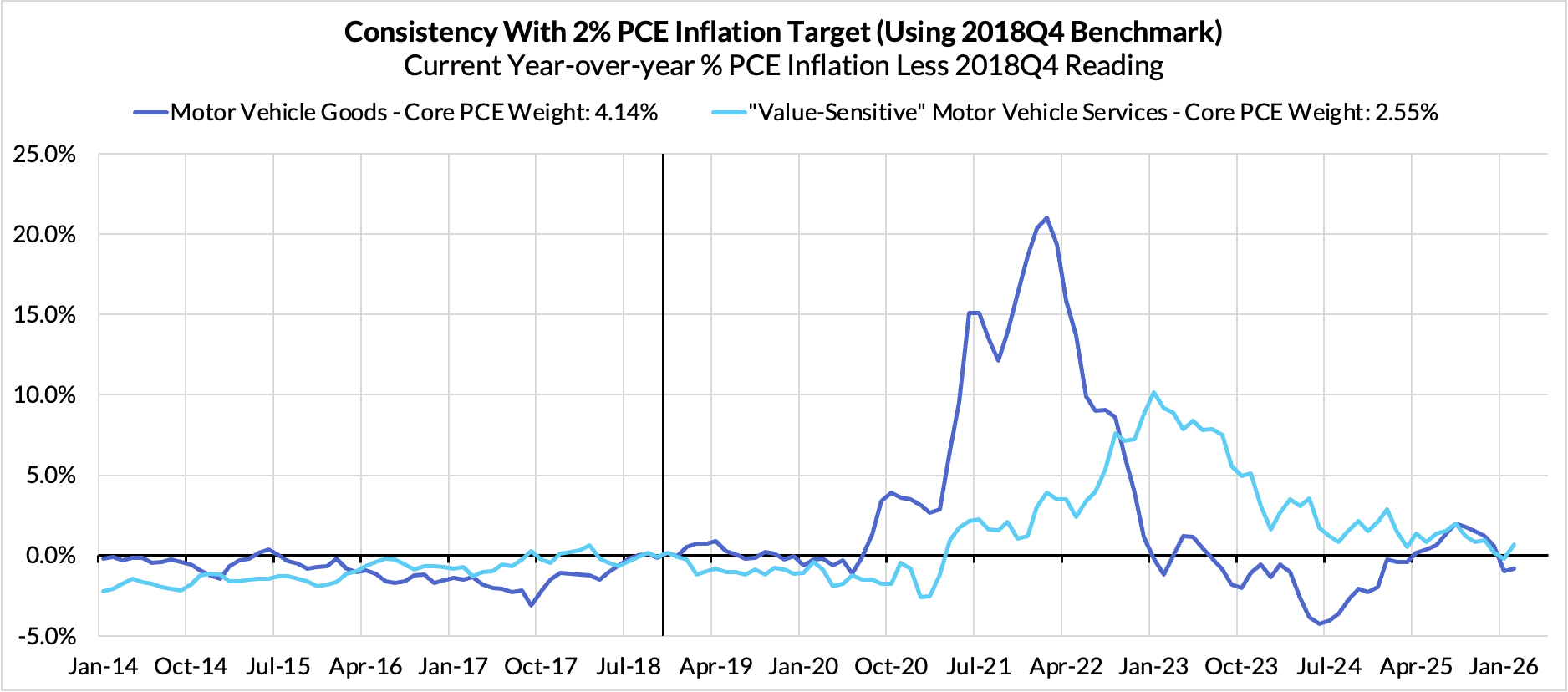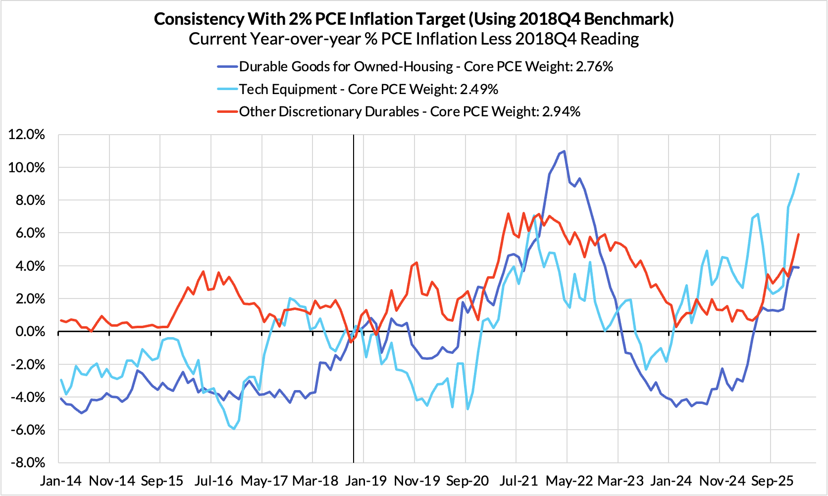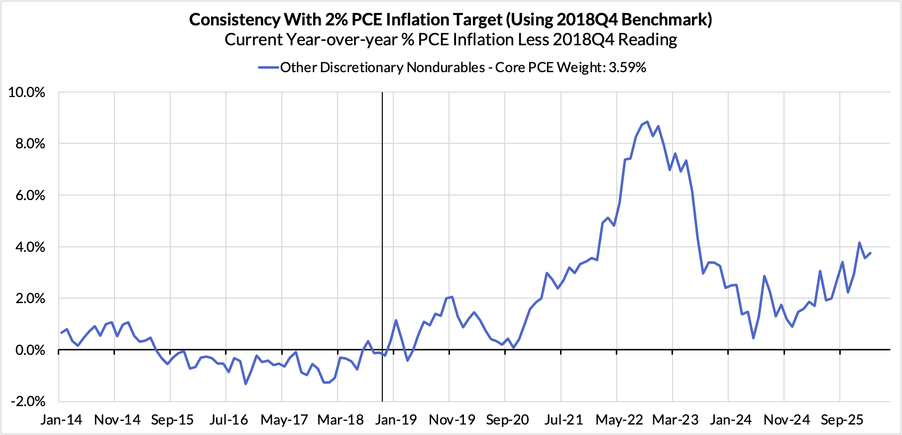 - Discretionary non-automobile goods + adjacent services are adding 72 basis points.