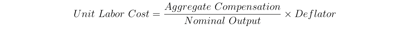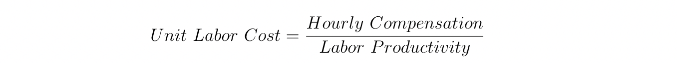 In the US, “unit labor costs” refer to a specific series published by the Bureau of Labor Statistics (BLS) that is calculated as the ratio of “hourly compensation” to “labor productivity” in the nonfarm business sector. In theory, the ULC is supposed to measure the average labor cost of production in the economy.