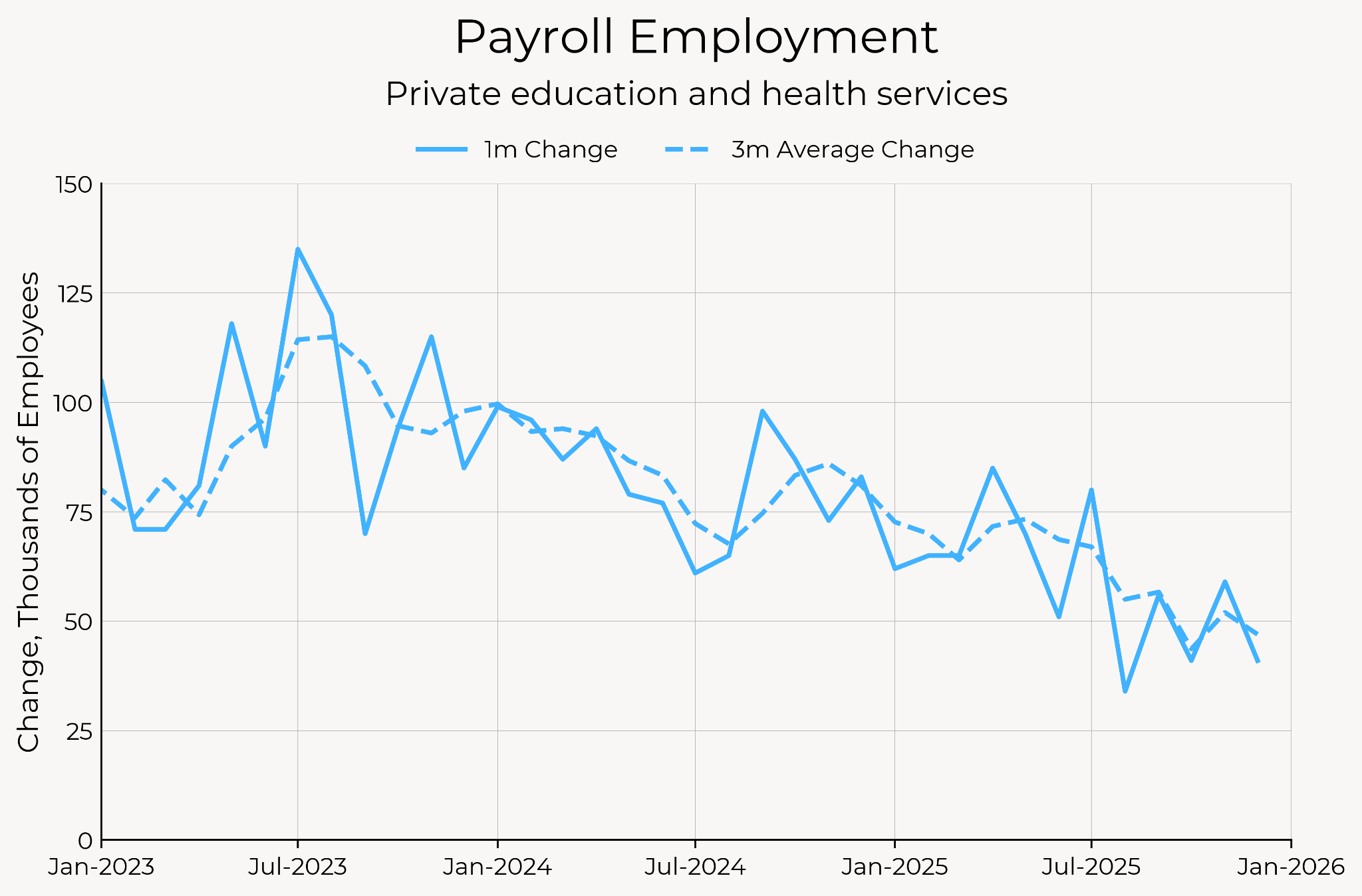 - Job growth is increasingly concentrated in a narrowing set of sectors like education, health, and government.