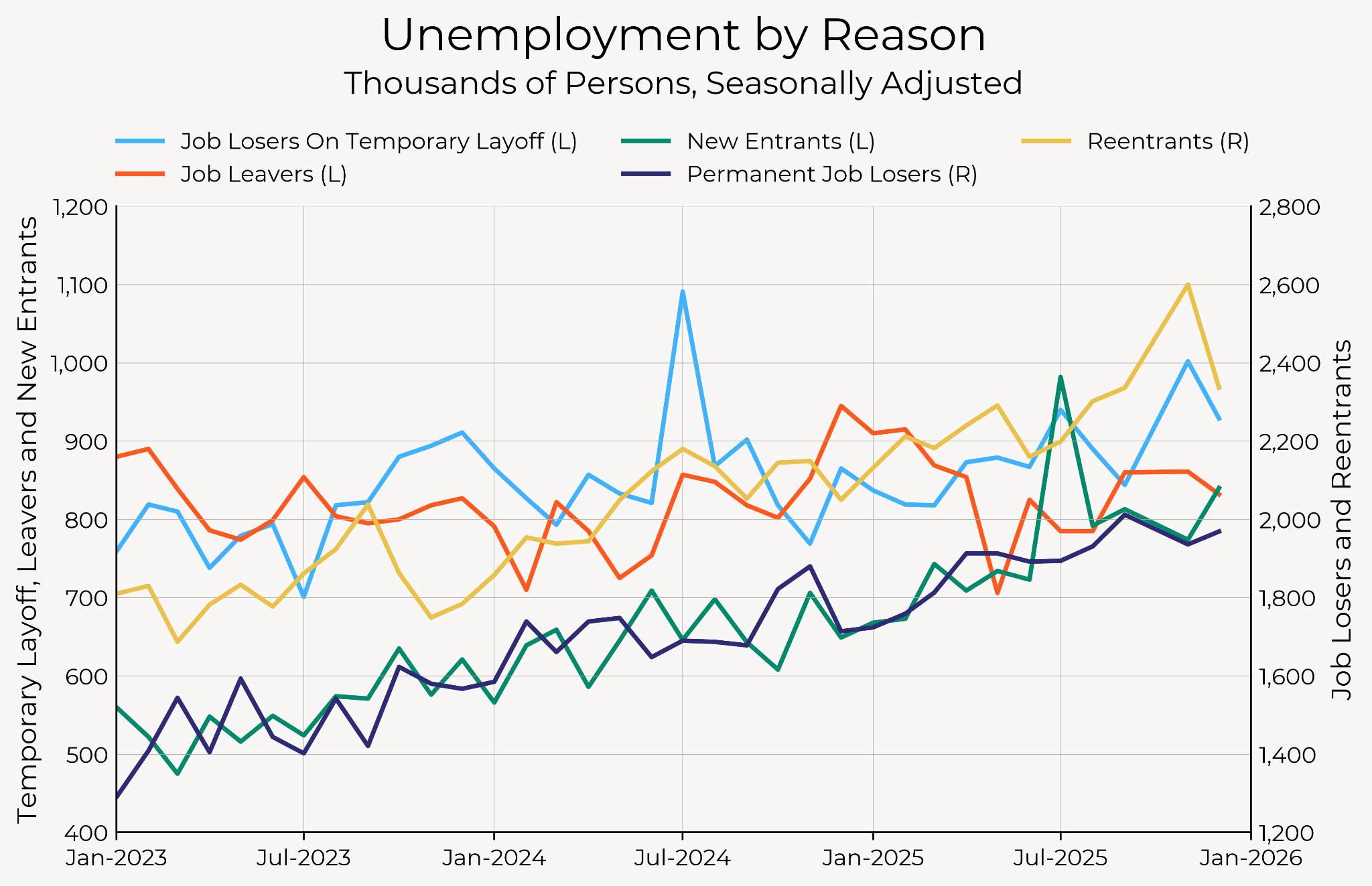 We can see this in the breakdown of unemployed workers by the reason they report being unemployed. A large fraction of the increase in unemployment comes from unemployed new entrants and reentrants. When unemployment increases among those, it’s a hiring problem, not a firing problem. The gradual increase in unemployed “permanent job losers” also likely represents a hiring problem (permanent job losers are slower to find new jobs, rather than more people permanently losing jobs).