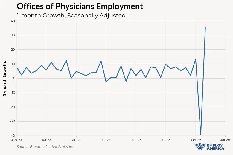 For example, the Kaiser Permanente strike in February ended. After those workers returned to work, the rebound in employment shows up as a particularly large increase in healthcare employment in March.
