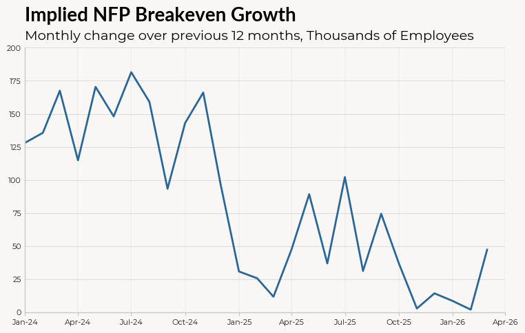 - The remainder captures the implied NFP breakeven growth rate required to keep employment rates constant.