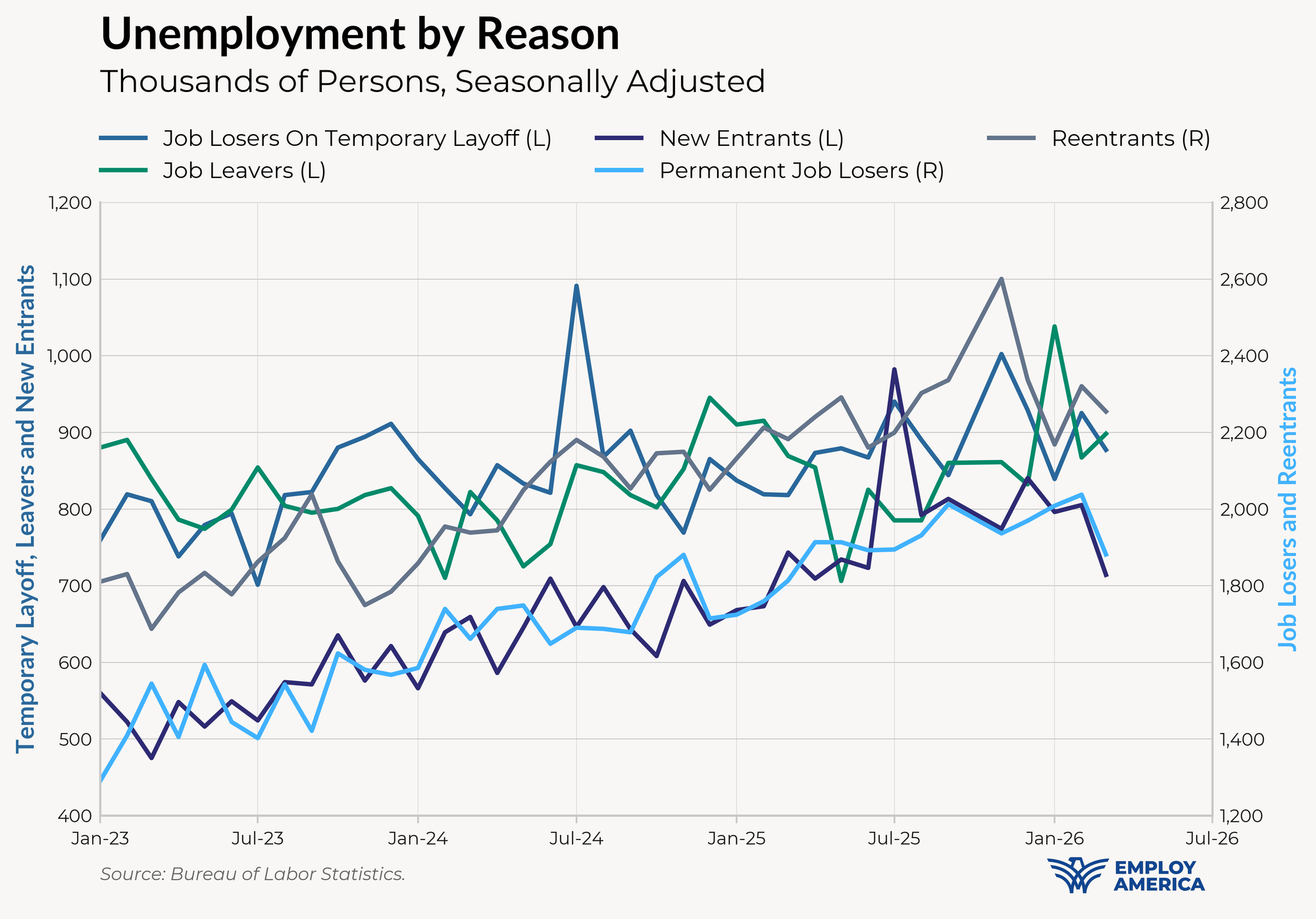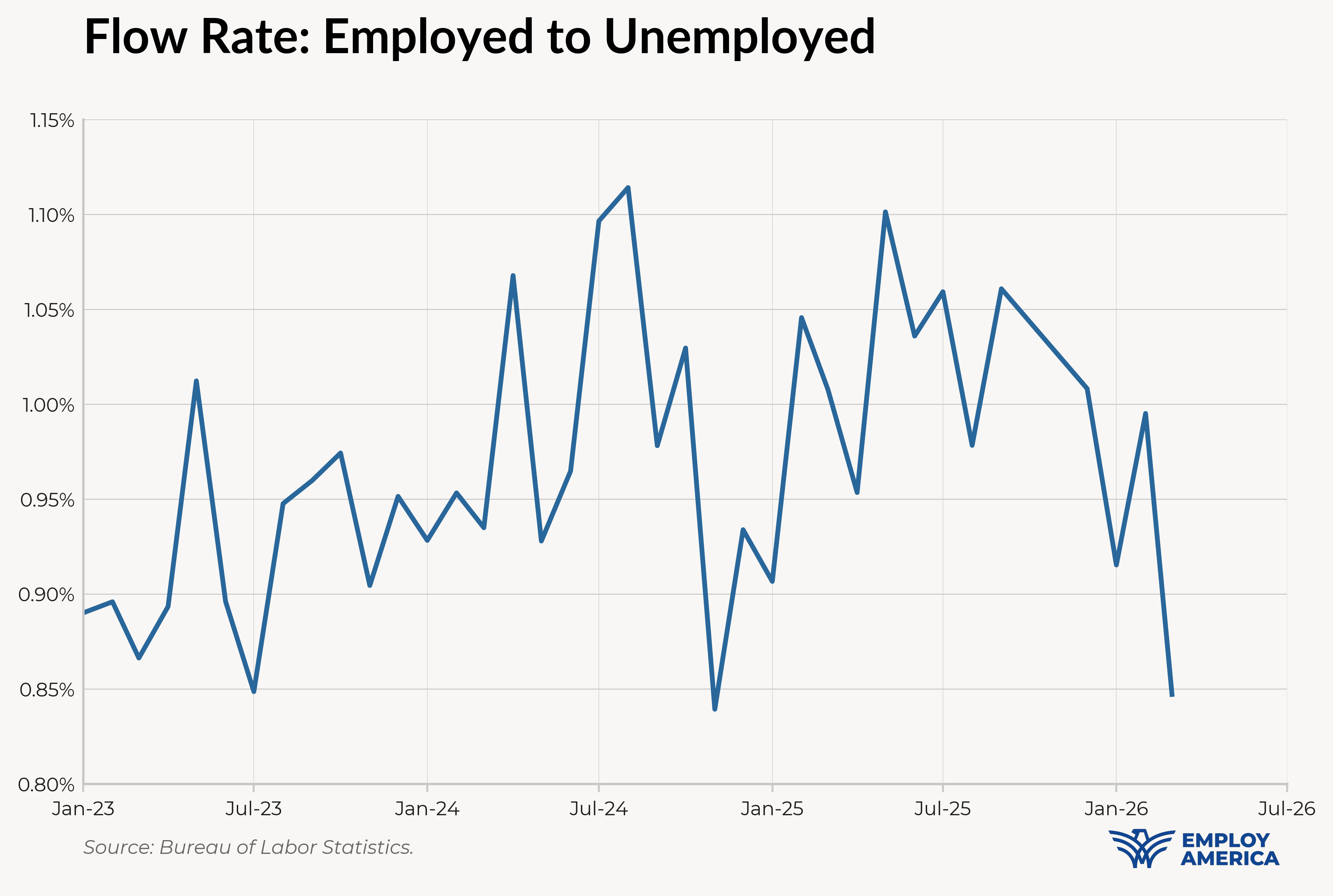Finally, the flow rate of employed to unemployed workers fell by about 15% in March, continuing a downward trend we’ve been seeing since mid-2025.