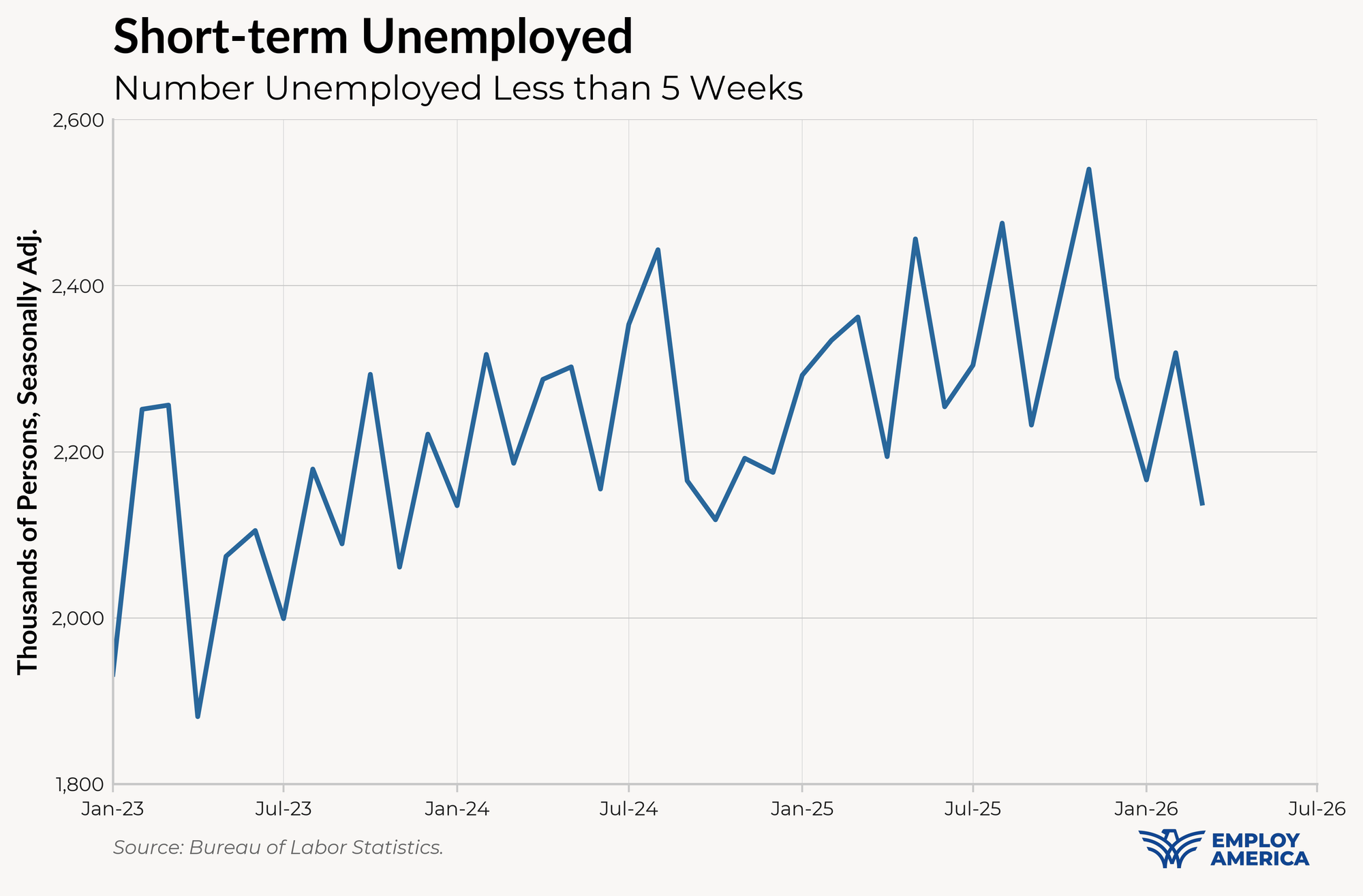 The number of short-term unemployed is now at its lowest level since 2024, and substantially down from its peak earlier in 2025: