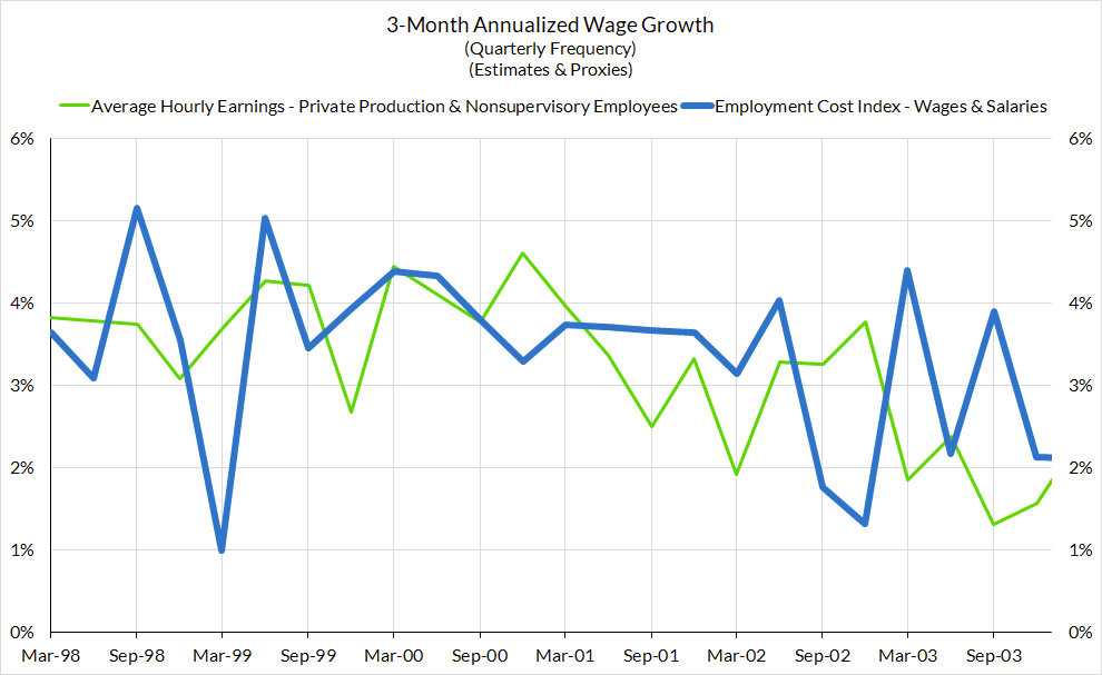But the longer history of ECI give ample reasons for caution when engaging in such crude nowcasting heuristics. There can be substantial divergences between each of these measures in any given quarter.