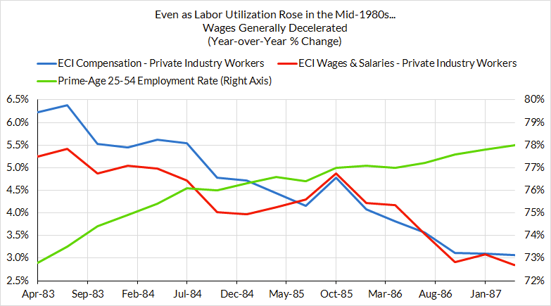Tomorrow's Employment Cost Index number plays an outsized role in labor market assessments, both for the Fed and for ourselves (albeit for different reasons). Among the government-provided measures of wage growth, ECI has the fewest blindspots and biases for the purpose of real-time business cycle interpretation.