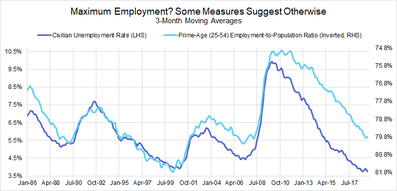 The prime-age employment-to-population (PA EPOP) ratio is better than the headline (U-3) unemployment rate as a barometer of labor utilization. Canada shows us that even when PA EPOP is pushed to new highs, wage and price acceleration does not necessarily follow or persist. It is time we rethink the interactions between labor markets and inflation.
