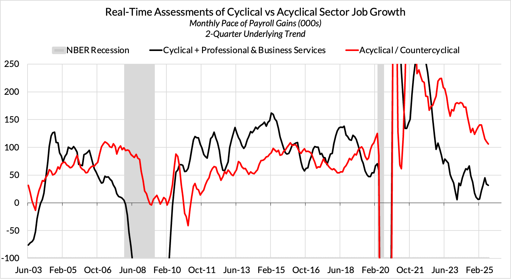 We share similar views to Governor Waller. On the surface, the labor market looks quite healthy, with nonfarm payroll gains averaging ~130k per month for 2025H1, the unemployment rate still in the low 4s, and the prime-age (25-54) employment rate still slightly above pre-pandemic peak.