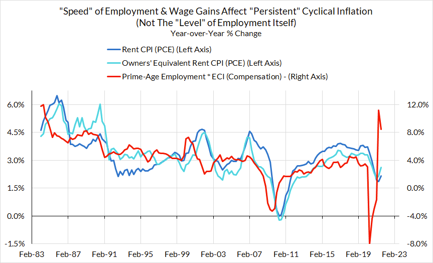 In the process of pursuing a historically rapid recovery in labor utilization, the economy is seeing evidence of a faster cyclical inflation recovery. As that historic pace subsides over the course of 2022, the inflationary pressure should subside as well. Although price inflation is currently very strong, it is likely that there still exists a pace of positive labor utilization gains consistent with the Fed's longer run inflation goals. The precise pace will, of course, be a function of the kinds of inflationary pressures the economy is experiencing over the course of 2022 and beyond.