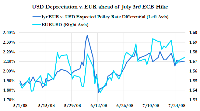 The European Central Bank even raised interest rates in June of 2008, which in turn put additional downward pressure on the US dollar in foreign exchange markets.