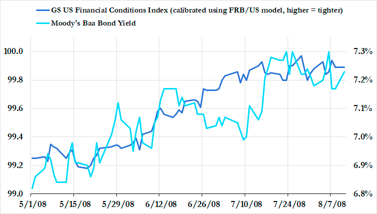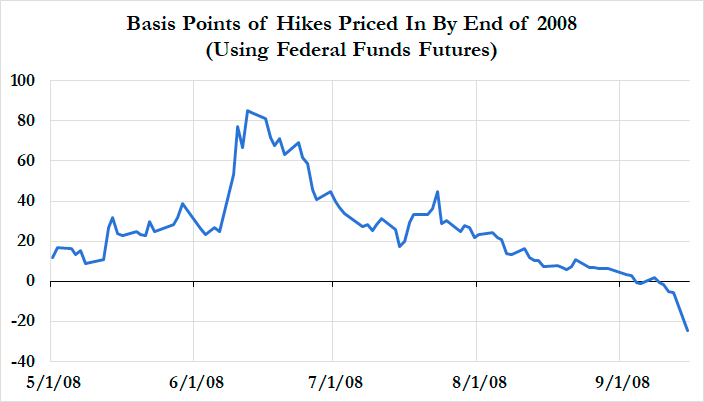 At the time, market expectations reflected a hawkish path for Fed policy, with interest rate futures pricing in more than three 25 basis point hikes before the end of 2008.