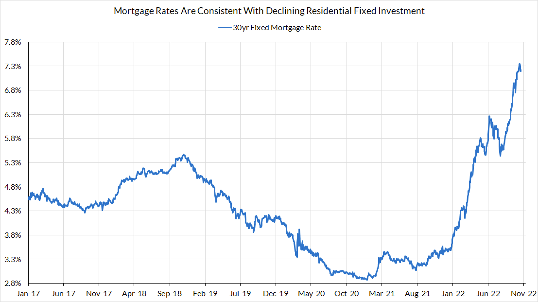 The amplified nature of financial conditions tightening can be seen most visibly across mortgage rates, corporate credit spreads, and exchange rates. Borrowing costs for prospective homeowners and corporations have increased by far more than the 300 basis points of realized hikes to the Federal Funds Rate. Exchange rates are not well explained by cross-country interest rate differentials alone.