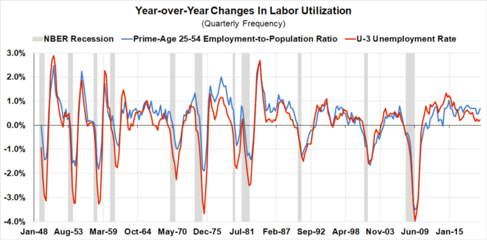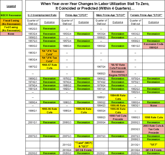 The Fed's own projection of stabilizing the unemployment rate in 2024 seems a little too convenient and firmly at odds with empirical evidence. Labor utilization typically does not stabilize on its own; the exceptions to this rule involve policy interventions that help to stave off further deterioration. Yet the Fed's own projections suggest not to expect any such intervention to stem from Fed policy.