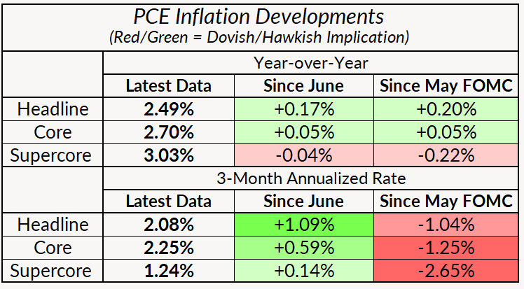 Since the last meeting on June 18th, the Fed has seen just one more month of labor market data and one more month of inflation data (the PCE report for May plus the CPI/PPI/IPI inputs for June).