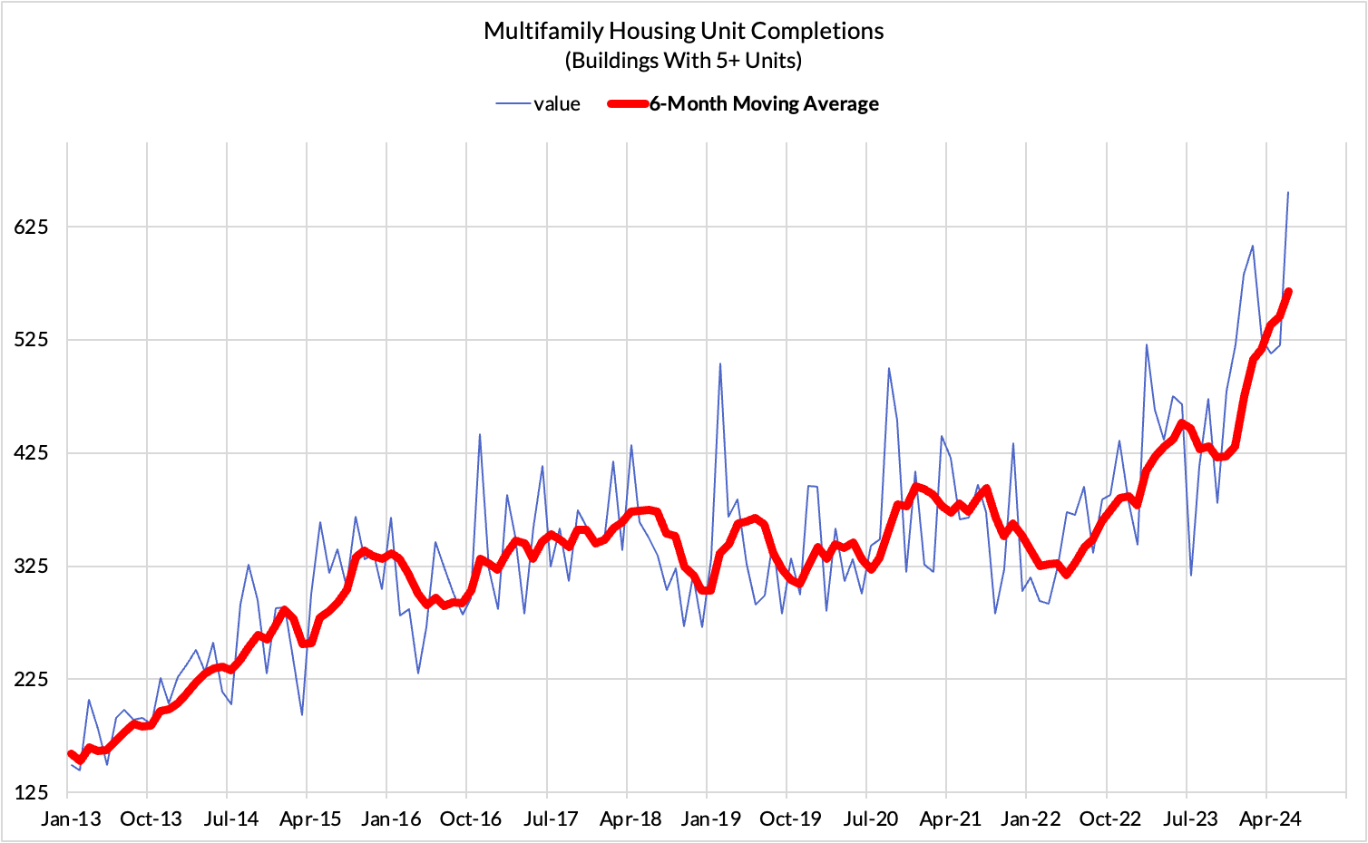 It's worth noting that there is a substantially longer time-to-build associated with the average and median multifamily building project, taking at least over a year if not two or three from the time of permit to the time of completion and delivery.