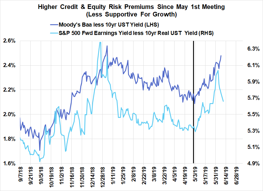 1. Financial conditions have tightened since the May meeting, in spite of greater anticipation of Fed easing