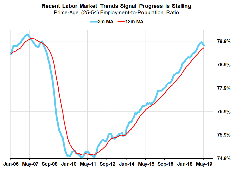 - While there are political developments related to trade policy that might motivate the Fed to act with greater certainty in July after the G20 summit, the areas of weakness are no longer limited to the political sphere. Politics inevitably plays a role in shaping the economy, as it has more recently through trade policy, the government shutdown, and the diminishing effects from prior fiscal stimulus. However, the labor market data is already deteriorating at a fast enough pace that maximum employment is at risk. The case for the Fed to cut should not be a function of any individual political event.