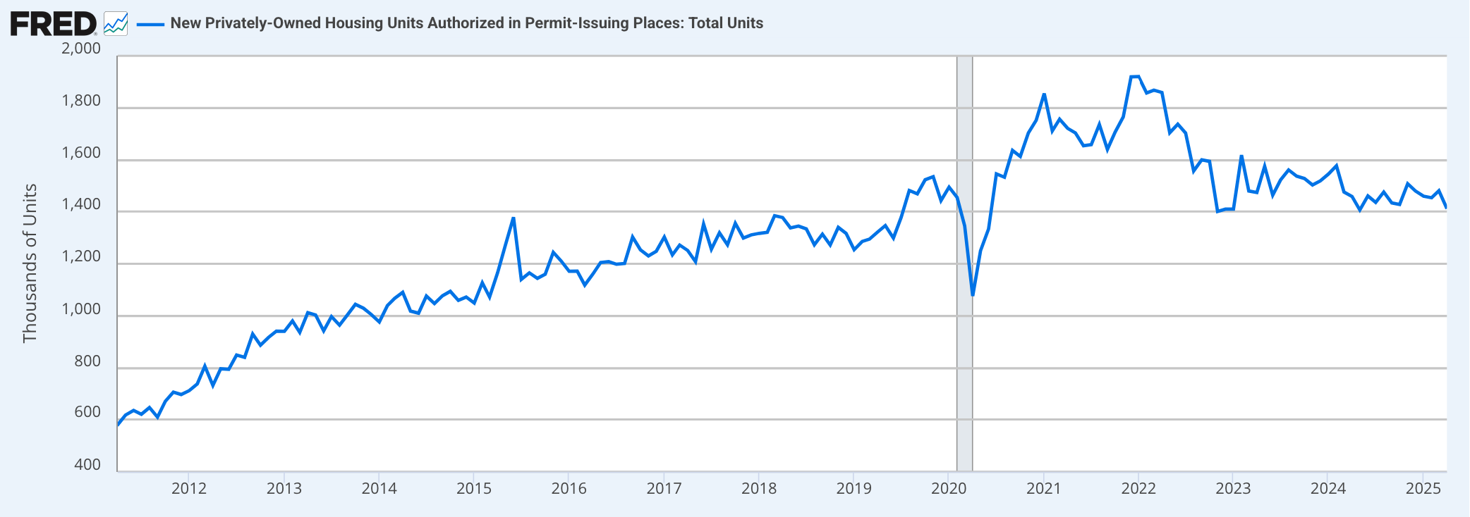 We only have to look to the housing market to see how these counterintuitive mechanisms may gain potency. While it is well-understood that higher mortgage rates curb the demand to purchase a home, they are also a signal to homebuilders to pull back. As of April 2025, the number of new residential units permitted is now back near its post-pandemic lows.