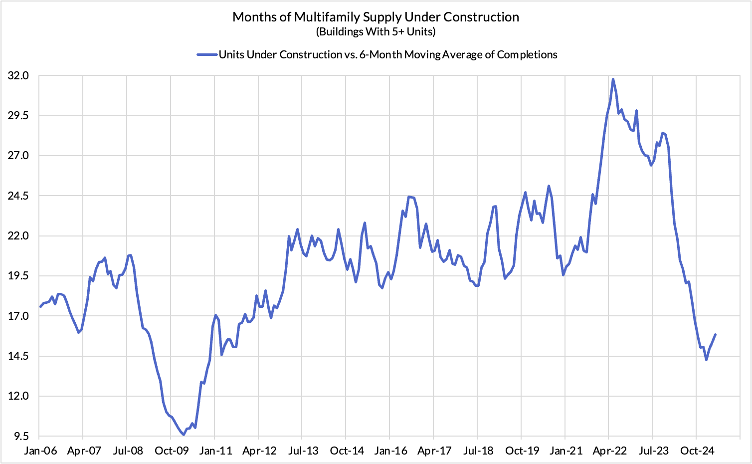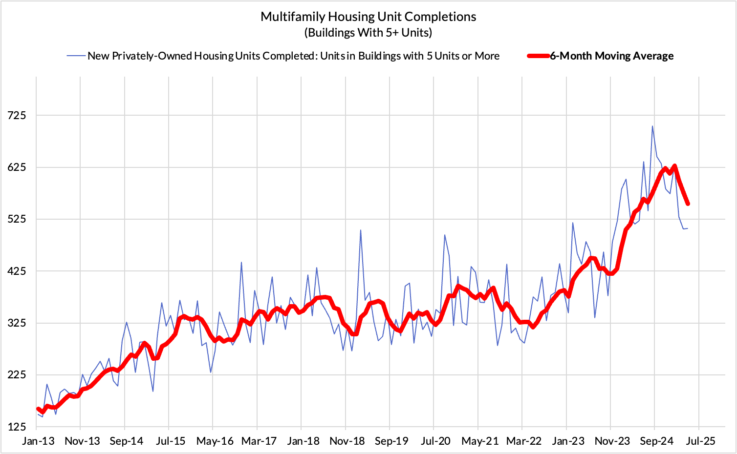 The housing market is sending a clear signal. Completions of multifamily housing units remain high, reflecting projects started in 2021 and 2022 when development financing costs for developers were still relatively low.