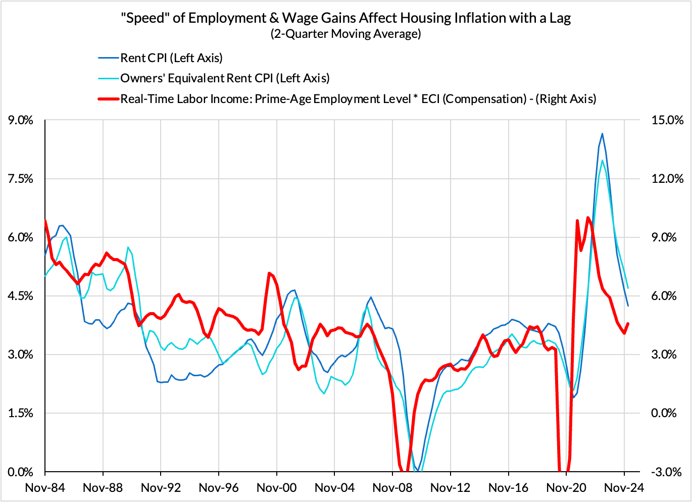 As the current stock of under-construction buildings is completed and insufficient supply emerges to replace it, rental markets are liable to further tightening. If nominal household incomes merely avoid underperformance, steady demand growth for housing will persist. And in an environment where new supply is eroding, we could see market rents meaningfully accelerate in the next 12 months. That might not filter into CPI and PCE instantaneously, but it would with a lag.