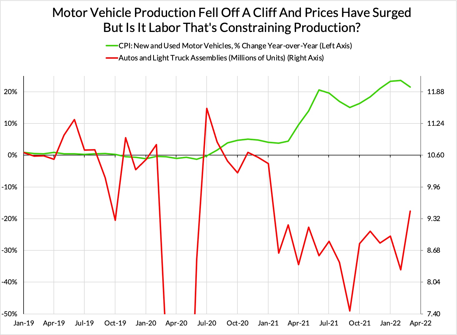 However, this shortage of physical capacity is not wholly the product of mistaken actors. Instead, the decision to run down physical capacity was often an understandable and locally rational response to persistent demand shortfalls. We walk through three industries—all of which are disproportionately responsible for current inflationary pressure and representative of real production constraints—to show how price and production crashes led to a situation of long-run underinvestment in productive capacity. Such crashes inadvertently created the conditions that currently constrain production and thereby explain the bulk of realized inflation. The specific goal of this piece is to describe the nature of current economic constraints, an inquiry distinct from the (equally worthwhile) question of what caused these economic constraints to bind in the first place.