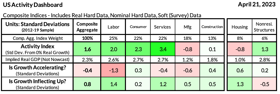 This monitor is a reflection of how we update our assessments of economic growth in real-time as we get meaningful updates from macroeconomic data releases. It provides a more timely and meaningful gauge of economic activity growth than what GDP and similar summary indicators provide. Please see here for more details about how to interpret this information.